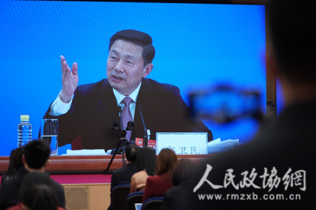 Ông Quách Vệ Dân, người phát ngôn Hội nghị Chính hiệp trả lời tại cuộc họp báo. (Ảnh: Mạng Chính hiệp nhân dân)