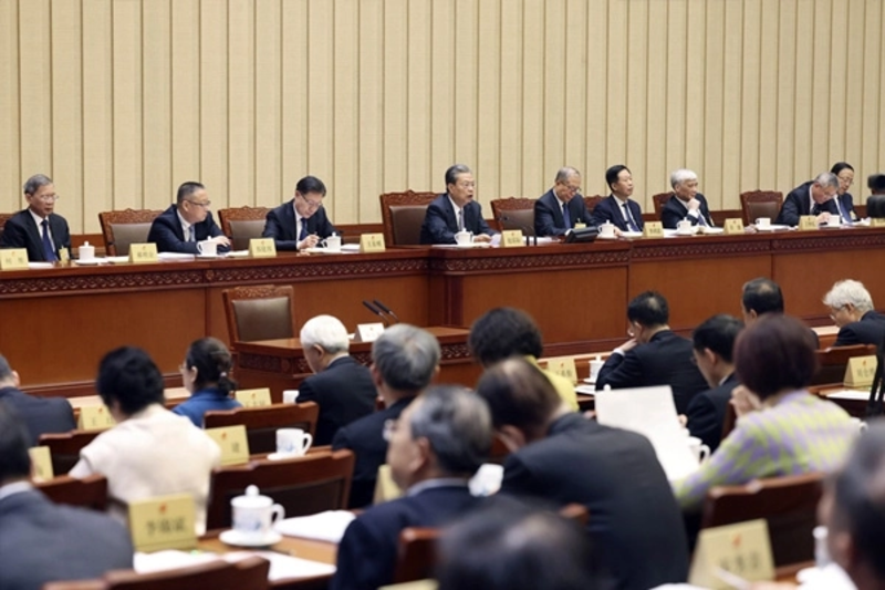 Phiên họp thứ 7 Ủy ban Thường vụ Đại hội đại biểu nhân dân toàn quốc Trung Quốc khóa XIV bế mạc tại Bắc Kinh chiều 29/12. Ủy viên trưởng Triệu Lạc Tế chủ trì phiên bế mạc. (Ảnh: Tân Hoa xã)