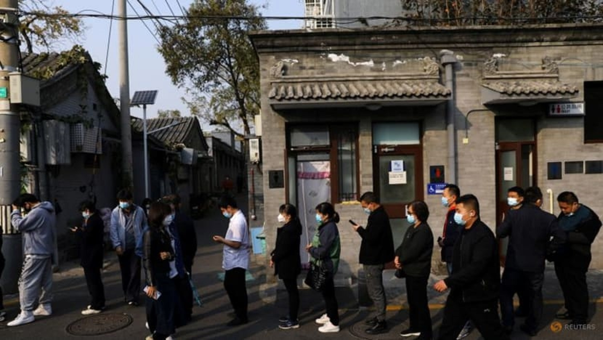 Người dân xếp hàng bên ngoài một điểm tiêm chủng ở Bắc Kinh, Trung Quốc hồi tháng 10. (Ảnh: Reuters).