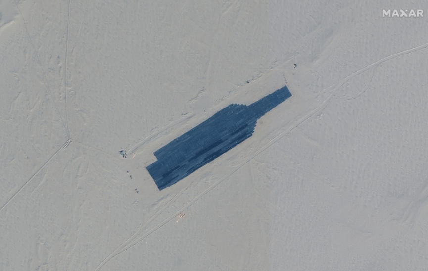 Ảnh vệ tinh cho thấy "tàu sân bay mục tiêu" ở Tân Cương, Trung Quốc. (Ảnh: Reuters)