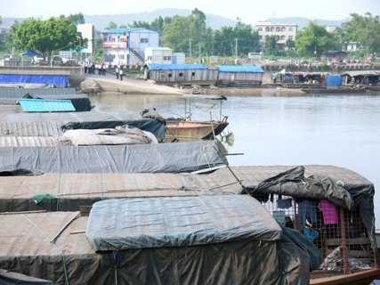 Dưới bến sông, hàng trăm chiếc đò máy đỗ san sát im lìm. 15 giờ, đường vào bến Lục Lầm, P.Hải Hòa cũng vắng tanh vắng ngắt. Sát lối vào bến, vài chục cửu vạn, lái xe… ngồi chật các quán nước tán chuyện hoặc tụ tập chơi bài…