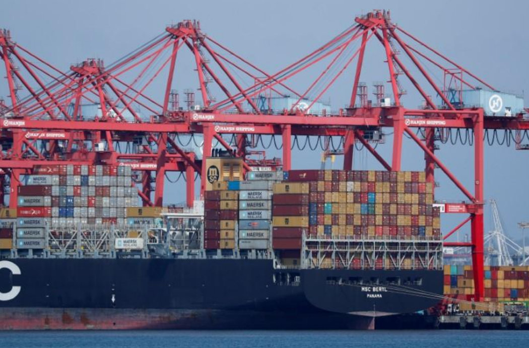 Tàu hàng tại cảng Long Beach, California. (Ảnh: Reuters)