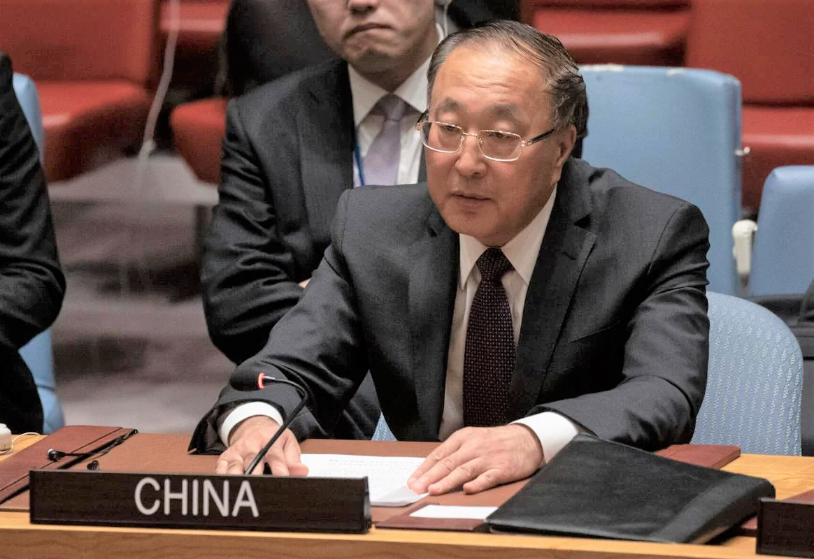 Đại sứ Trung Quốc tại Liên hợp quốc Trương Quân phát biểu trong cuộc họp đặc biệt của Hội đồng bảo an về vụ phá đập thủy điện Kakhovskaya. (Ảnh: AP)