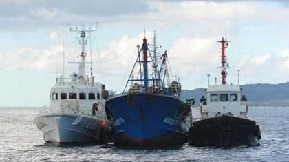 | Một tàu cá Trung Quốc bị tàu tuần tra biển Nhật bắt giữ - Ảnh: Kyodo |