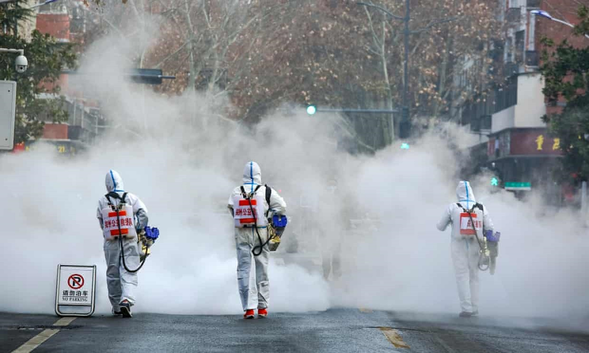 Phun khử khuẩn ở Trịnh Châu. (Ảnh: The Guardian)