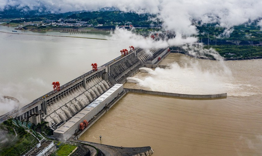 Đập Tam Hiệp của Trung Quốc mở 3 cửa xả lũ do tác động của mưa lớn kéo dài. (Ảnh: Tân Hoa xã)