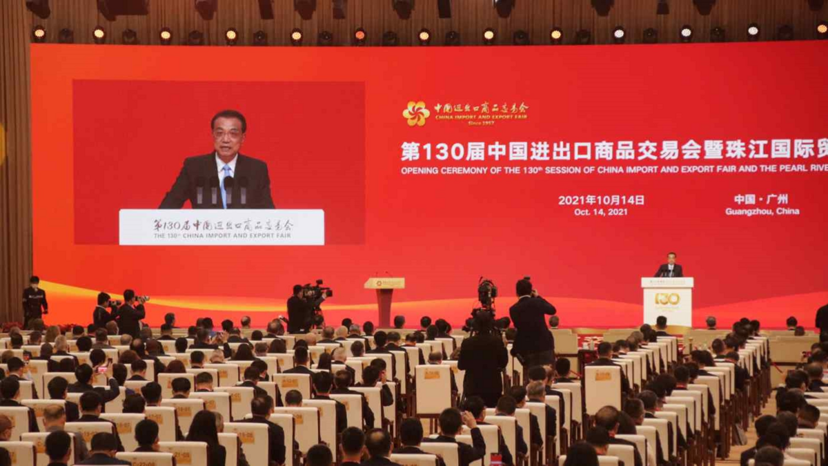 Thủ tướng Trung Quốc Lý Khắc Cường phát biểu tại Hội chợ Xuất Nhập khẩu Trung Quốc. (Ảnh: Nikkei Asia)