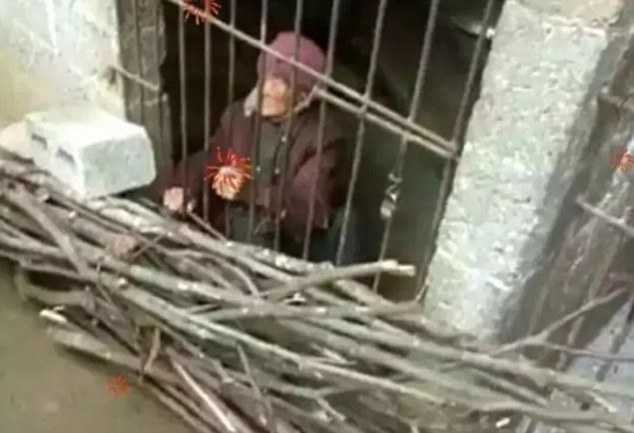 Thân hình gầy gò đáng thương của cụ bà bị con trai và con dâu nhốt trong chuồng sắt
