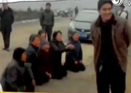 Sự việc xảy ra tại tỉnh Hà Nam, Trung Quốc, năm người phụ nữ đứng tuổi quỳ giữa đường trong thời tiết giá lạnh, họ vừa khóc vừa nói, vừa van xin các cán bộ giải quyết.