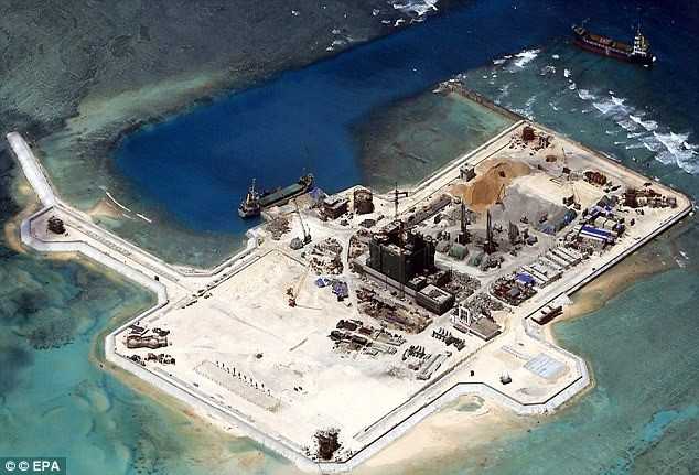 Các thực thể Trung Quốc bồi lấp trái phép thành đảo nhân tạo. Ảnh: WSJ