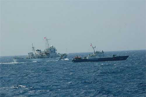 Tàu Trung Quốc tập trung thành các nhóm khoảng 8 - 10 tàu (trong đó gồm tàu cá, tàu Hải cảnh, Hải giám, tàu kéo) nhằm vây ép, sẵn sàng đâm va, phun nước vào các tàu Kiểm ngư của Việt Nam ở khoảng cách 4 - 5 hải lý.