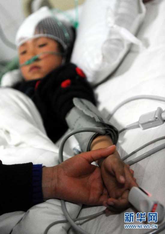 | Một em nhỏ bị thương đang nằm điều trị trong bệnh viện địa phương |