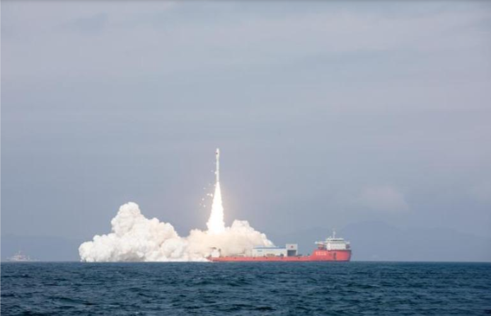 Tên lửa đẩy Jielong-3 mang theo 9 vệ tinh được phóng thành công từ vùng biển gần Dương Giang, tỉnh Quảng Đông, Trung Quốc, ngày 3/2. (Ảnh: China News)