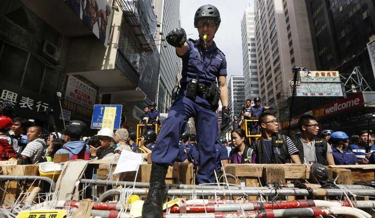 | Cảnh sát Hong Kong dọn dẹp đường phố |