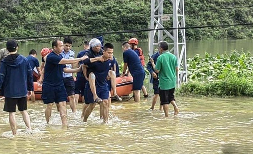 Cứu trợ lũ lụt ở Bách Sắc, tỉnh Quảng Tây, Trung Quốc. (Ảnh: Chinanews)