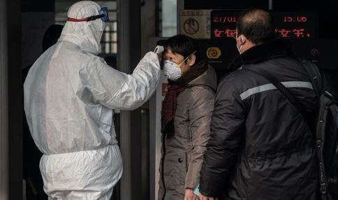 Nhân viên an ninh kiểm tra nhiệt độ của hành khách đi tàu điện ngầm ở Bắc Kinh ngày 27/1. Ảnh:Reuters