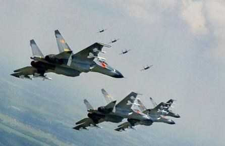 | Chiến đấu cơ J-10 của Trung Quốc bay theo đội hình |