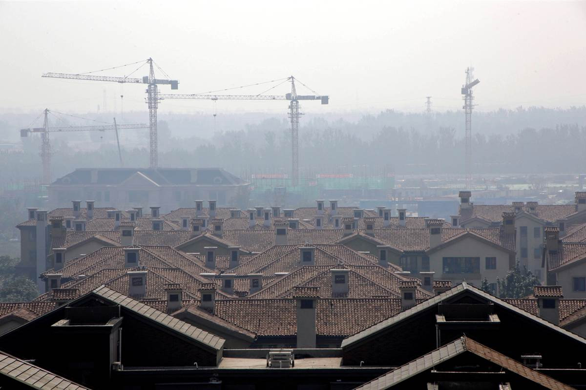 Cần cẩu chi chít đằng sau những căn hộ mới xây ở Thiên Tân, Trung Quốc.