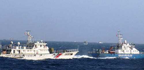 Tàu Trung Quốc (trái) áp sát tàu Cảnh sát biển Việt Nam