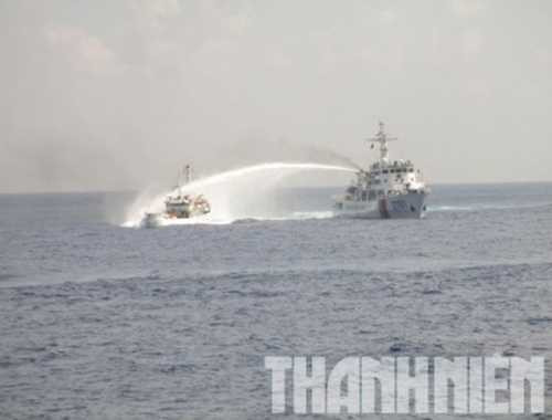 Tàu Trung Quốc đã áp sát, vây ép và phun nước vào tàu chấp pháp của Việt Nam trong quá trình tiếp cận giàn khoan Hải Dương 981 để thực hiện nhiệm vụ.