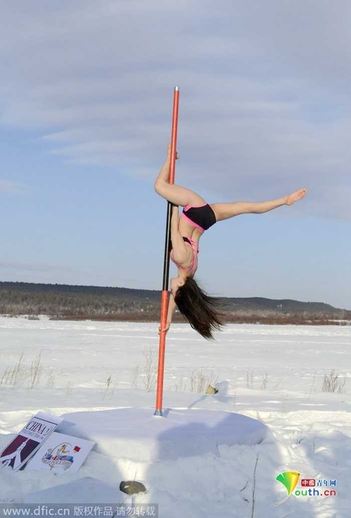 Trung Quốc: Thiếu nữ múa cột ngoài trời lạnh âm 50 độ C