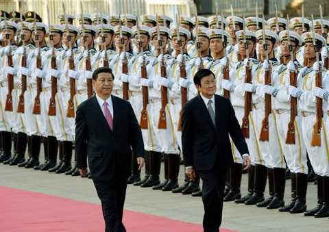 Tại Đại lễ đường Nhân dân, Chủ tịch Tập Cận Bình đã tổ chức lễ đón tiếp trọng thể Chủ tịch nước Trương Tấn Sang với nghi thức duyệt đội danh dự.