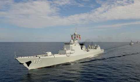 | Tàu khu trục Type 052C của Hải quân Trung Quốc rời cảng Sanya tham gia tập trận hồi tháng 1 năm nay |