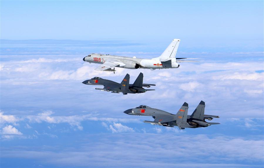 Máy bay của không quân Trung Quốc tham gia một cuộc diễn tập trên biển. (Ảnh: Tân Hoa Xã)