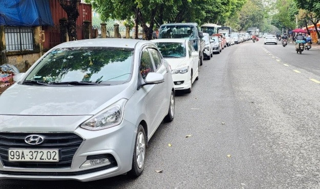 Qua trưa, hàng dài xe ô tô vẫn xếp hàng đợi đăng kiểm tại Bắc Ninh.