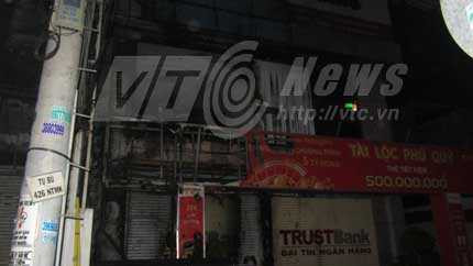 Ngọn lửa có thể xuất phát từ các đèn bảng hiệu ở lầu 1 và lầu 2 của Ngân hàng Trust Bank (Ảnh: N.D)