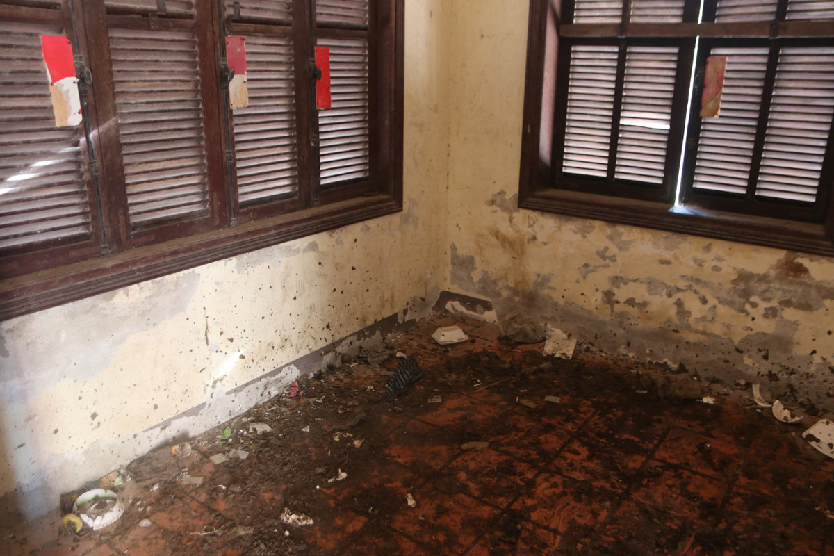 Nền nhà bẩn thỉu, uế tạp đầy chất thải từ động vật do từng bị người dân tự ý "trưng dụng" thành chuồng nhốt bò.