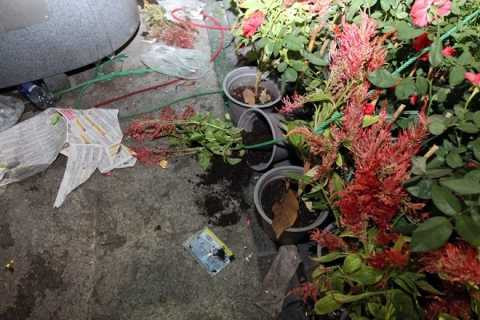 Ngoài việc xả rác, các chậu hoa trên đường hoa Nguyễn Huệ cũng bị du khách giẫm đạp ngã đổ, hư hỏng...