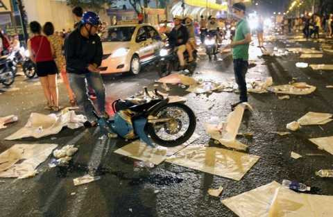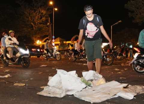 Ngán ngẩm nhìn bãi rác thải giữa trung tâm thành phố, Chí Cường (quận Thủ Đức) cho biết, các nhóm đến xem pháo hoa mang theo báo hoặc mua những tờ giấy trắng trải xuống đường ngồi chờ. "Khi xem xong, phần lớn thản nhiên bỏ về và quên luôn rác của mình", Cường chia sẻ.
