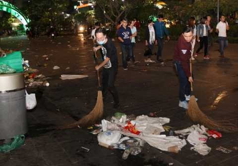 Sau khi người xem pháo hoa rời đi, lực lượng công nhân vệ sinh tỏa đi khắp các tuyến đường nhanh chóng tiếp cận dọn dẹp cho thành phố trở lại sạch sẽ.