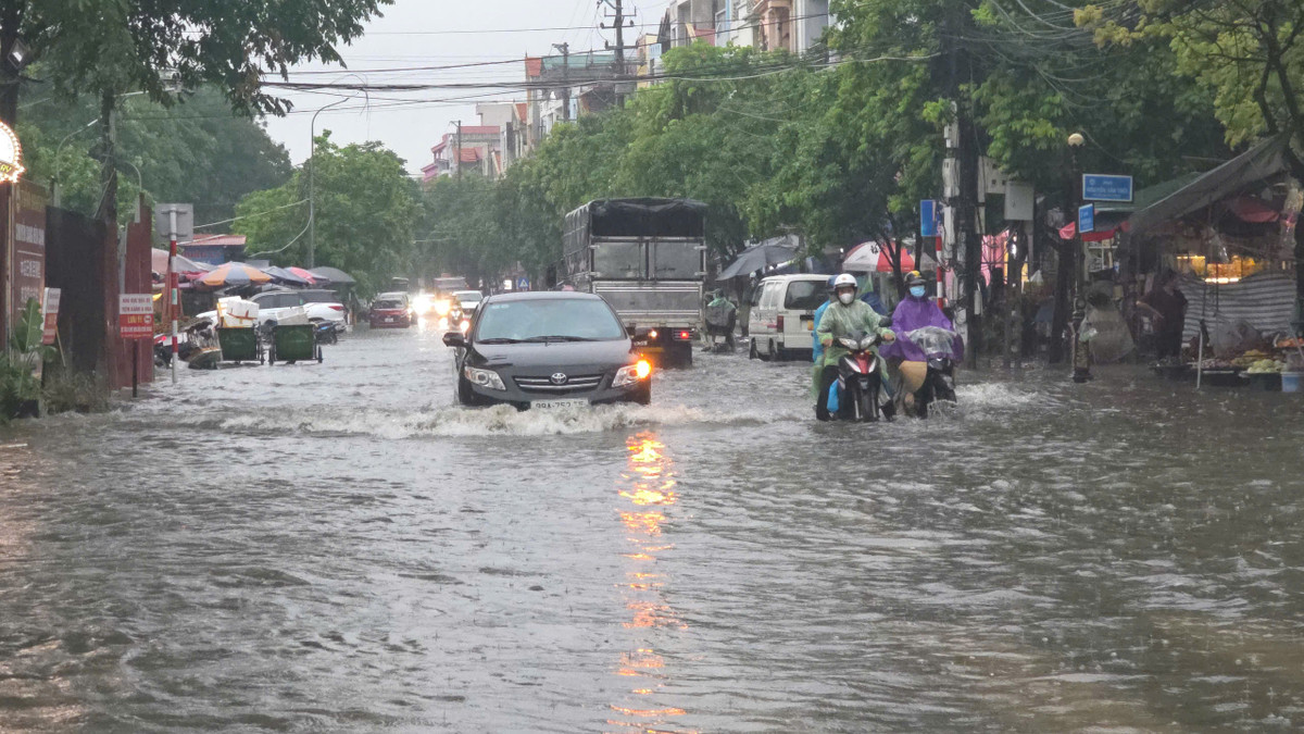 Mưa lớn khiến nhiều tuyến đường ở trung tâm Thành phố Bắc Ninh hóa sông.