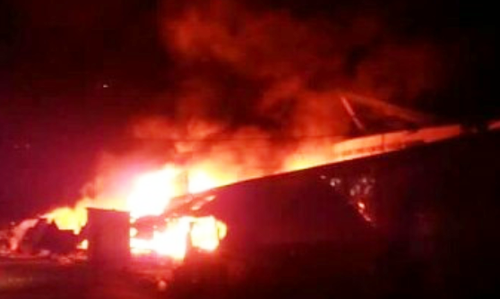 | Ngọn lửa bùng phát dữ dội trong đêm tại Trung tâm Thương mại Núi Sam. Ảnh: A.X |