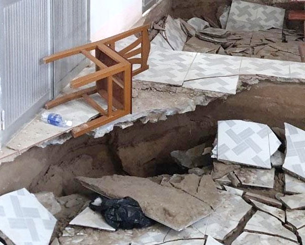 Hiện trường vụ sụt nền tại Trung tâm Y tế huyện Phước Long (Bạc Liêu).