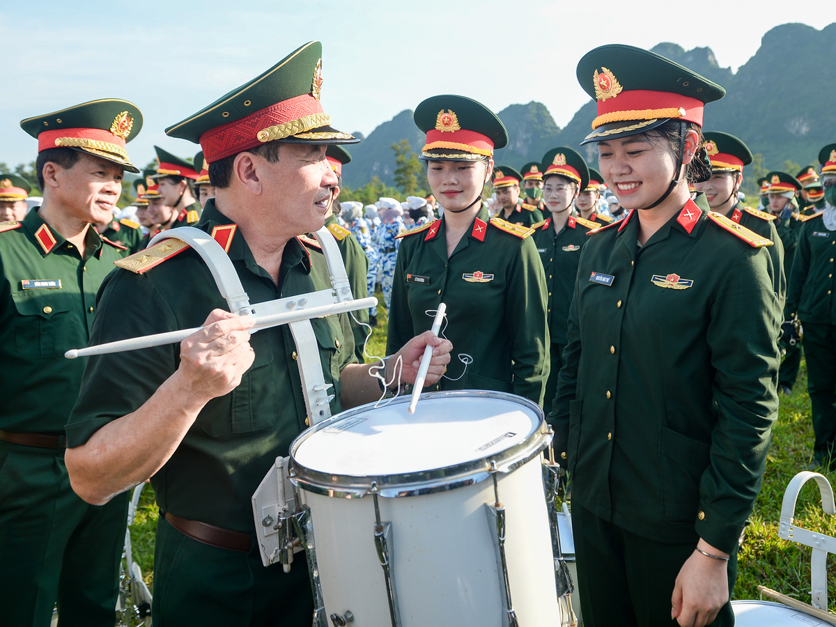 Lãnh đạo Tổng cục Chính trị QĐND Việt Nam kiểm tra các khối diễu binh, diễu hành.