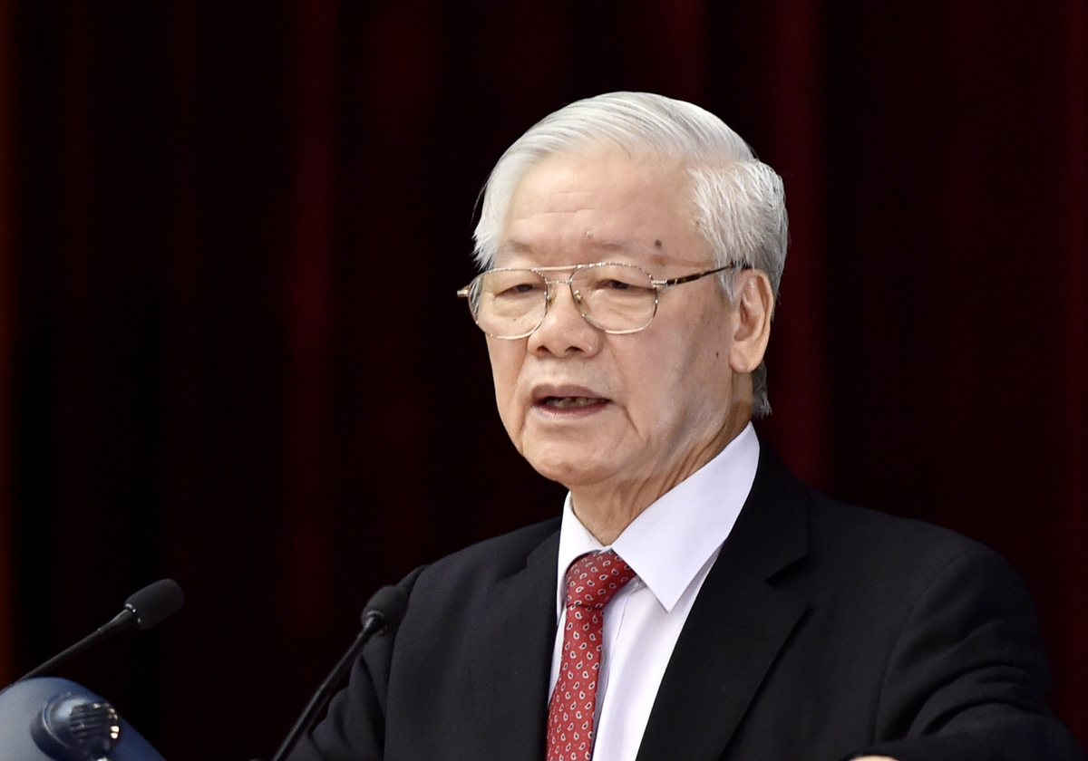 Tổng Bí thư Nguyễn Phú Trọng phát biểu bế mạc Hội nghị. (Ảnh: Nhật Bắc)