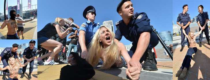 (VTC News) – Nhóm phản đối Euro 2012 FEMEN tại Ukraine vừa có một trận hỗn chiến với cảnh sát Kiev ngay bên ngoài sân vận động Olympic khoảng 1h đồng hồ trước khi trận chung kết Euro 2012 giữa Tây Ban Nha và Italia diễn ra.