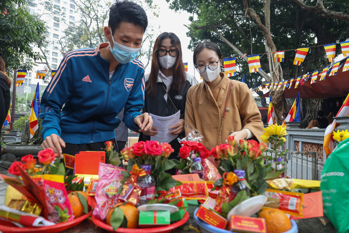 Ghi nhận của PV VTC News sáng 11/2, rất đông bạn trẻ đến chùa Hà (Cầu Giấy, Hà Nội) để dâng lễ cầu duyên, mong cho chuyện tình cảm sẽ như ý.