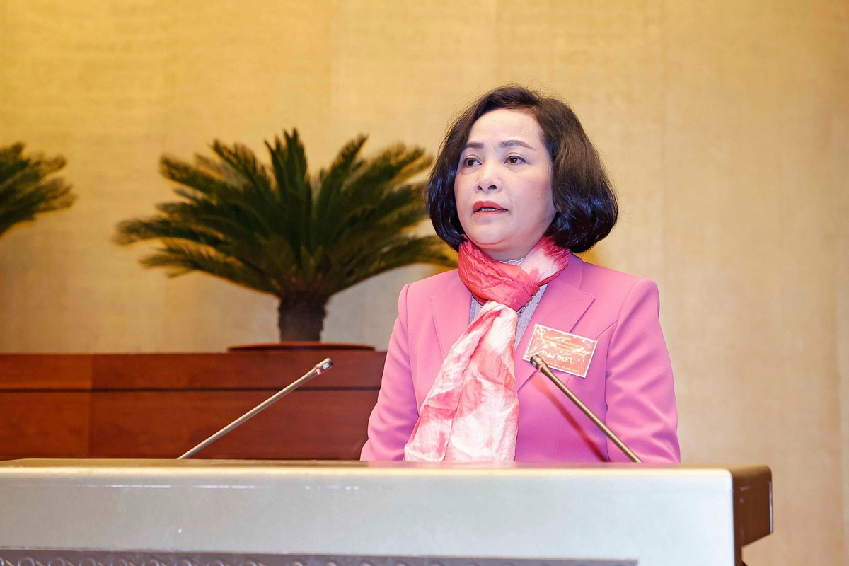 Trưởng Ban Công tác đại biểu Nguyễn Thị Thanh trình bày báo cáo sáng 21/2.