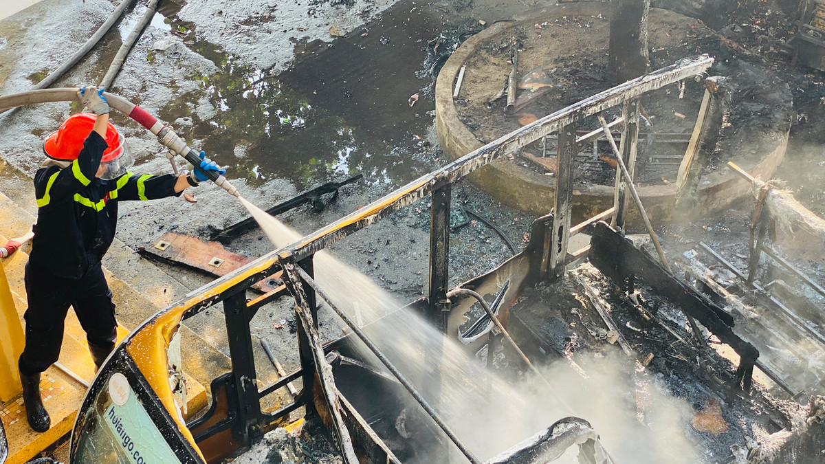 Sau 30 phút nỗ lực dập lửa, đám cháy mới cơ bản được khống chế. Thời điểm phát hiện hỏa hoạn, một số nhân viên của nhà trường đã phối hợp đẩy được 12 xe ra ngoài (trong đó có 6 xe bị hư hỏng), còn lại 40 xe bị thiêu rụi.