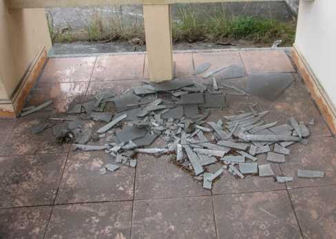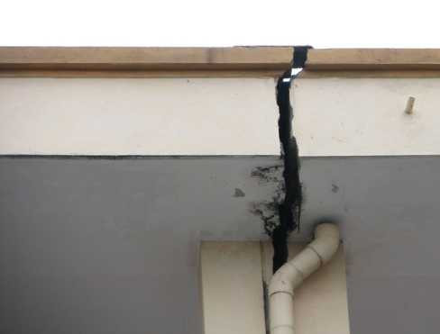 | Tại khe co giãn giữa 2 khối nhà xuất hiện tình trạng lún, xô lệch rộng 6 đến 7 cm. |