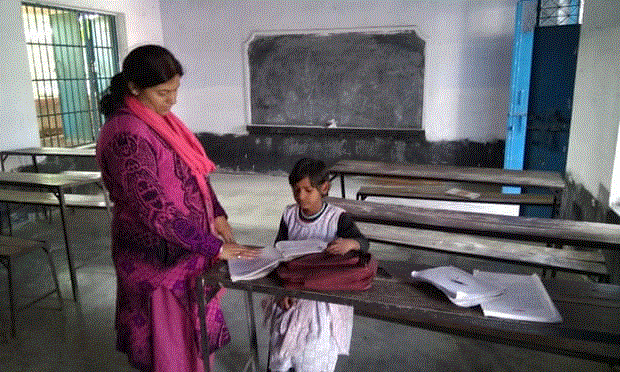 Priyanka Kumari đang dạy học cho Janhavi. (Ảnh: Manoj Chaurasia)