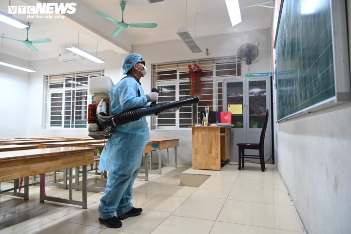 "Chúng tôi thực hiện việc phun khử trùng theo chỉ đạo của Phòng GD&ĐT quận.Trong ngày mai, các trường trên địa bàn quận sẽ đồng loạt thực hiện việc phụ thuốc khử trùng để phòng chống dịch bệnh, đảm bảo an toàn sức khỏe cho học sinh", cô Dung cho biết.