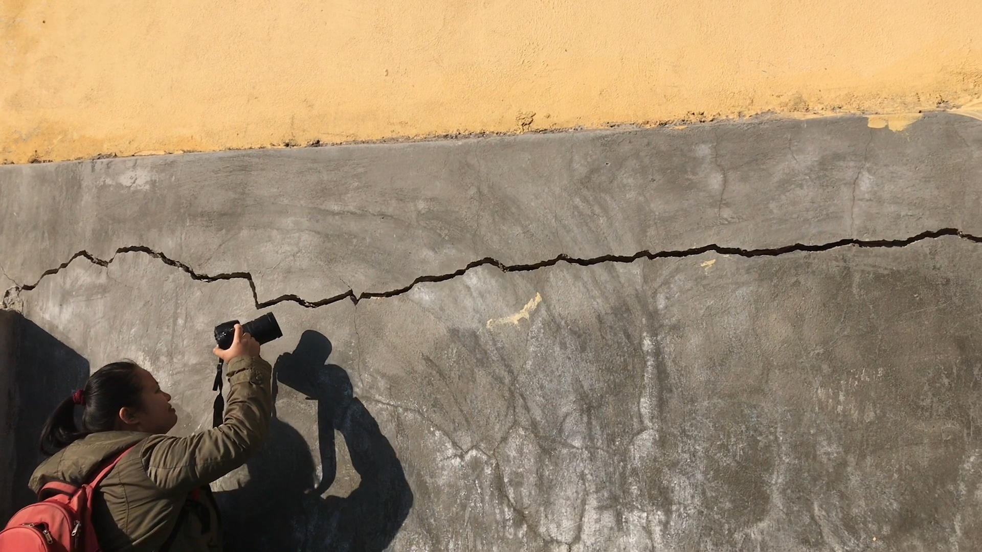 Các vết nứt dài tại trường THPT Nguyễn Thái Học khiến nhiều giáo viên, học sinh lo lắng.