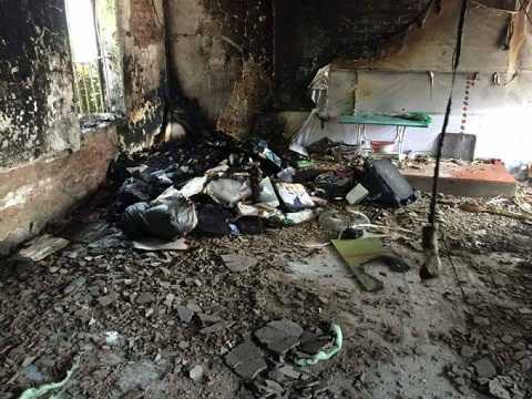 Toàn bô thiết bị, đồ dùng trong lớp học đã bị lử thiêu rụi.