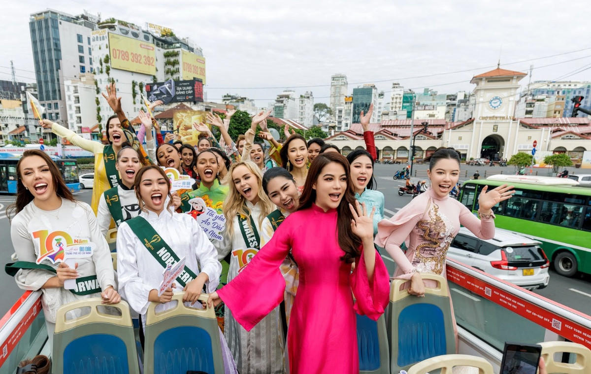 90 thí sinh Miss Earth 2023 có dịp ngồi xe buýt hai tầng, tham quan TP.HCM. Là thí sinh chủ nhà, Lan Anh giới thiệu các công trình, địa điểm nổi tiếng với các người đẹp Miss Earth.