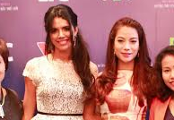 | Trương Ngọc Ánh diện áo dài trẻ trung, đọ sắc với Ivian Sarcos. |